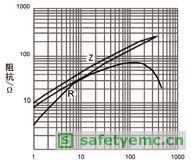 圖3鐵氧體隨頻率變化的阻抗分量