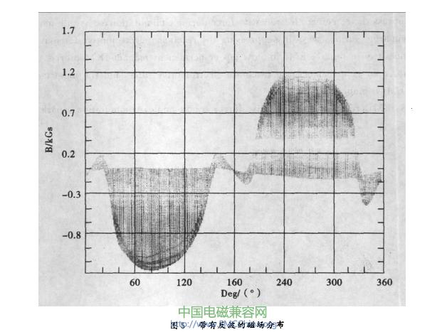 則會嚴重影響EMi,且不易被發現。以圖5為例.兩磁極在靠近中性線的位置處均有與該磁極極性相反的一段反波.仔細分析借偏的原理可知,該反波事實上相當于一個與正常換向極作用相反的附加磁極,當其被轉子換向線圈切割時,產生的電動勢與電抗電動勢同向,也就是會惡化換向;當其分布角度超過借偏角度時,會完全抹殺借偏的作用。