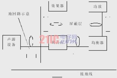 在不同設(shè)備的地線之間由于接地電阻的不同而存在地電位差,或在系統(tǒng)的內(nèi)部接地存在回路時(shí),則會(huì)引接地噪聲,2個(gè)不同的音頻系統(tǒng)互連時(shí),也有可能產(chǎn)生噪聲,噪聲是由2個(gè)系統(tǒng)的地線直接相連造成的。