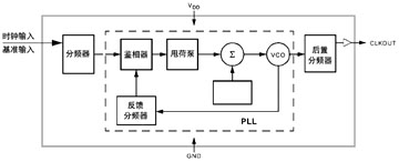 W181采用了頻率鎖相環(PLL)技術來調制輸入時鐘,其結果是得到一個輸出時鐘,它的頻率可緩慢地掃過一個接近于輸入信號的窄帶?;倦娐方Y構如圖2所示。