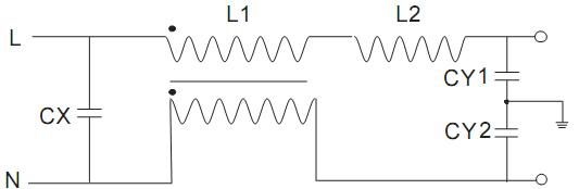 圖1是開關電源常用的一級EMI 濾波器的電路。圖中的L1為共模扼流圈,Cx、CY1、CY2為安規(guī)電容,對于小型開關電源來講,由于體積的限制,很多時候會將CY1、CY2會省略掉的,甚至連L1也會省去。圖中 共模扼流圈L1的兩個線圈匝數(shù)相等,方向相同,這兩個電感對于差模電流和主電流所產生的磁通是方向相反、互相抵消的,因而不起作用;而對于共模干擾信號,兩線圈產生的磁通方向相同,有相互加強的作用,每一線圈電感值為單獨存在時的兩倍,從而得到一個高阻抗,起到良好的抑制作用。共模電感兩邊感量不相等形成的差模電感L2一起與Cx電容組成一個低通濾波器,用來抑制電源線上存在的差模干擾信號。CY1與CY2的存在是給共模噪聲提供旁路,同時與共模電感一起,組成LC低通濾波器。共模噪聲的衰減在低頻時主要由電感起作用,而在高頻時大部分由電容CY1及CY2起作用。同時,在安裝與布線時應當注意:濾波器應盡量靠近設備入口處安裝, 并且濾波器的輸入和輸出線必須分開,防止輸入端與輸出端線路相互耦合,降低濾波特性。濾波器中電容器導線應盡量短,以防止感抗與容抗在某頻率上形成諧振。