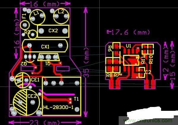 上PCB,對于EMI來說,走線就是靈魂。由于板子要內置,有尺寸要求,并且還要有可控硅調光功能,由于節省了很多EMI元件,導致明顯超標。