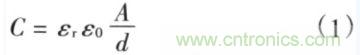 式(1)顯示,減小電容器極板之間的距離(d)和增加極板的截面積(A)將增加電容器的電容量。電容通常存在等效串聯電阻(ESR)和等效串聯電感(ESL)二個寄生參數。