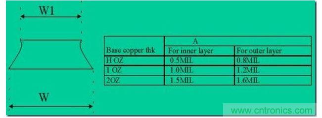 走線厚度T與該層的銅厚有對應關系,具體如下:
