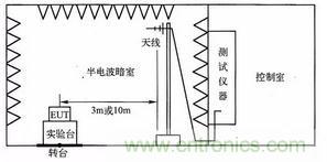 a)電場輻射:也是分臺式與落地式,與傳導發(fā)射相同(因為輻射發(fā)射結果與產品布置的關系 尤為密切,因此需要嚴格按照標準布置包括產品、輔助設備、所有電纜在內的受試品);