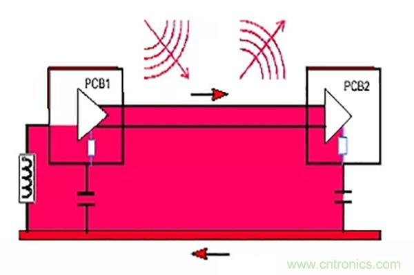 -在干擾源與干擾對稱之間存在著互感而產生,干擾量是變化的磁場,即變化的電流di/dt。
