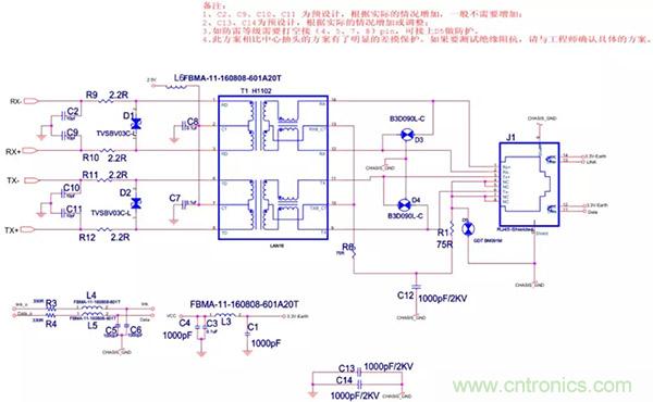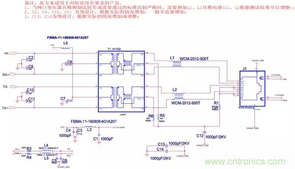 (1)以太網(wǎng)EMC(EMI)設計標準電路