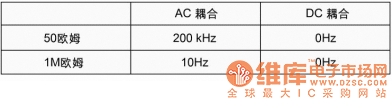 測試電源地噪聲可以使用頻譜分析儀和示波器,頻譜分析儀的輸入端口不能接入直流分量,因此在測試電源地噪聲時,必須在測試夾具中串連dc-blocking。頻譜分析儀的輸入阻抗為50歐姆,電源地網絡的阻抗一般為毫歐姆級,所以,測試夾具不會對待測系統產生影響。示波器的輸入阻抗隨設置的不同而改變,以泰克公司的tds784為例,其低頻截至頻率隨耦合方式和系統阻抗變化而變化,如表2所示。