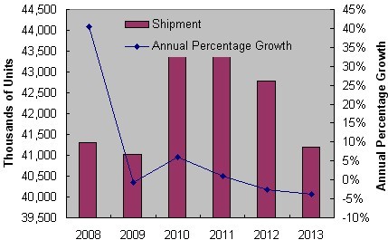- 在未來四年內,全球銷售量預計將保持平穩,2013年預計為4,120萬個,幾乎與2008年持平