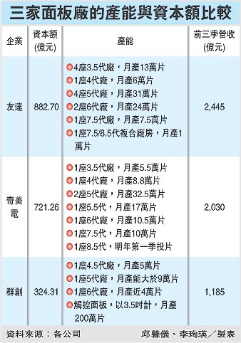 臺(tái)灣三家面板廠產(chǎn)能與資本額比較