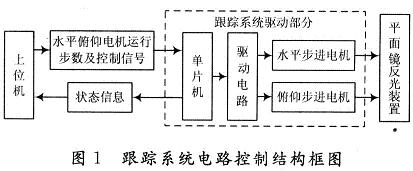 其中,水平方位電機由D7,D6,D5,D4驅動;俯仰方向電機由D3,D2,D1,D0驅動。跟蹤裝置中步進電機選用42BYG250C型,步矩角1.8°。水平俯仰方向步進電機運行的最大角度是360°,共需運行20000步。減速器的傳動比為1:100,即電機轉動100°時水平轉臺相應轉動1°。以步進電機1.8°的步距角計算,當鏡面裝置的水平轉臺轉動1°時,步進電機發出100/1.8個脈沖,由此可以計算平面鏡法向量的方位角為a時步進電機發出的脈沖數為100α/1.8個。步進電機動作頻率可手動設置,默認情況下,步進電機每隔15s動作一次。[page]