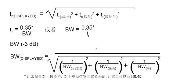 如果示波器和探頭各自均為100MHz帶寬,其上升時間均為tr=3.5ns 。則有效系統(tǒng)上升時間就由下式給出: