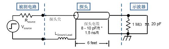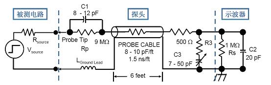 當(dāng)我們進(jìn)行信號測量時,我們常常以為測得的電壓和電路中未連入示波器時是完全一樣的,實際則不然。打個比方,我們用溫度計去度量火焰的溫度,溫度計未靠近時火焰溫度50攝氏度,靠近后溫度計要從火焰中汲取熱量,自身溫度升高而火焰溫度降低為49度,溫度計反映出來的溫度值就為49度,很明顯有1度的測量誤差,這個誤差正是因為引入測量系統(tǒng)后帶來的。
