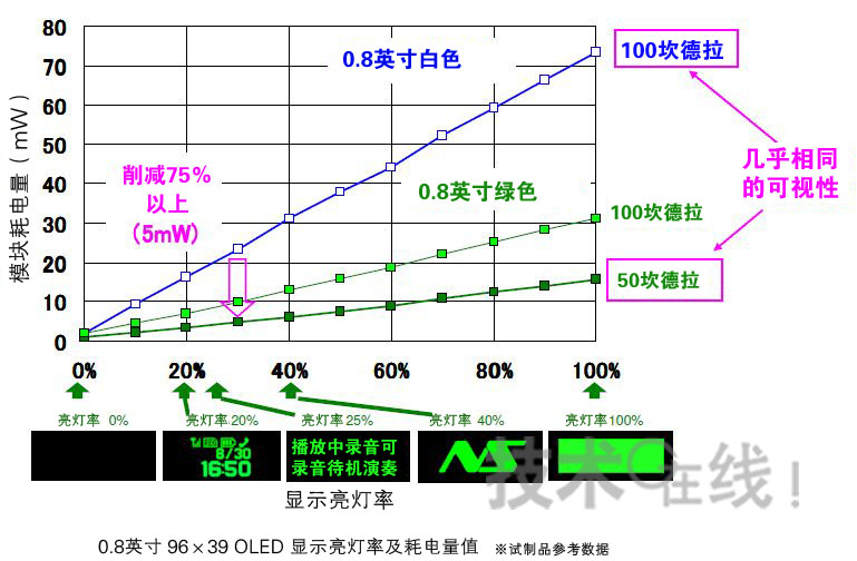 此次開發(fā)的有機(jī)EL面板的耗電量“與配備LED背照燈的液晶面板相當(dāng)”。日本精機(jī)首先試制了0.8英寸的綠色面板,與該公司原來同尺寸面板相比,“可視性幾乎相同,耗電量削減了75%”(日本精機(jī))。該公司計劃利用此次的有機(jī)EL面板低耗電技術(shù),推動有機(jī)EL面板的普及。