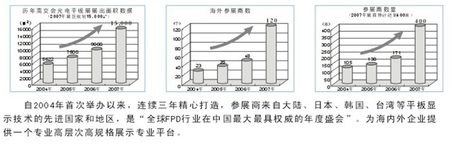 ●“光電平板顯示展”將吸引知名FPD企業的高管(日立、夏普、三星、LG、友達、華映等)、通路商的高管、政府要員、技術人員等近五萬人到場,同時組委會將通過國內外相關行業協會、商會組織專業士參觀。