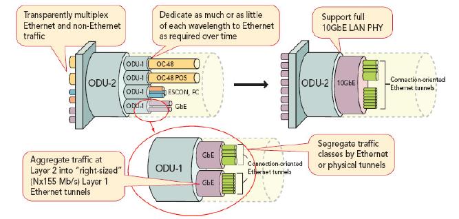 圖3.客戶側(cè)匯集的各種協(xié)議使得OTN成為高性價(jià)比通用基本結(jié)構(gòu)