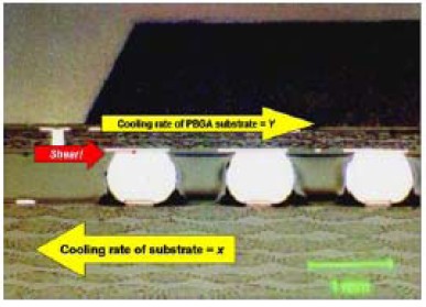 圖8剪切應力造成的BGA分層和微裂縫