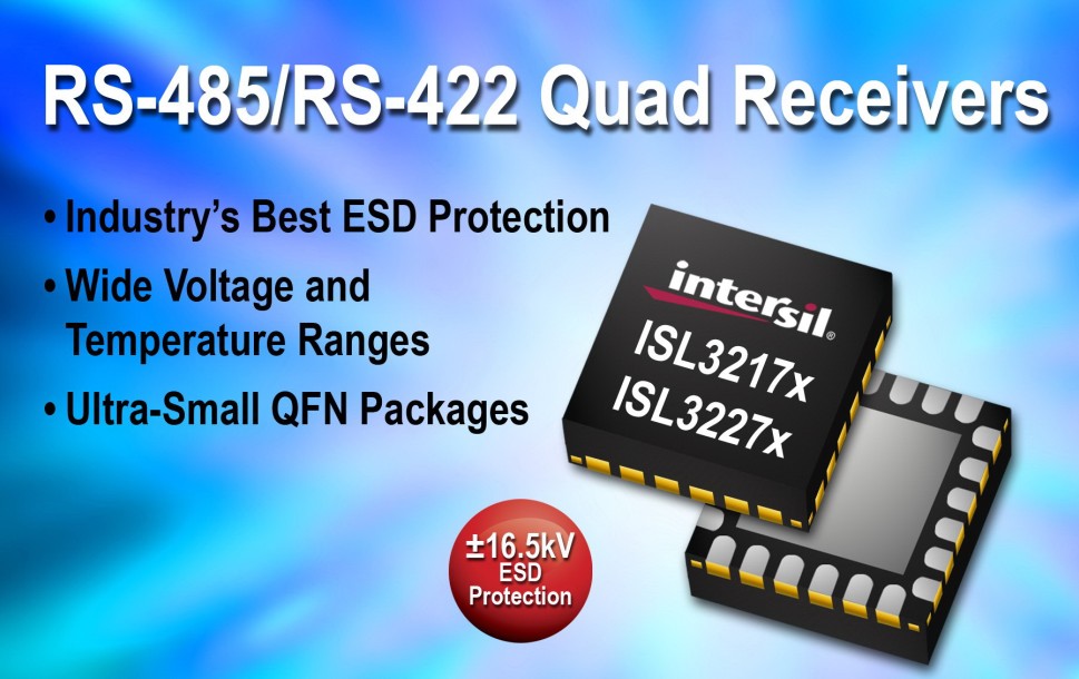 全球高性能模擬半導(dǎo)體設(shè)計(jì)和制造領(lǐng)導(dǎo)廠商Intersil公司今天宣布,推出新系列的小占位、四端口、可提供16.5kV ESD保護(hù)、具有寬電壓和寬溫范圍的RS-485和RS-422接收器 --- ISL3217x和ISL3227x系列。