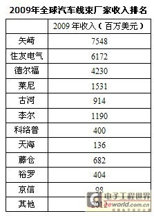 2009年全球汽車線束廠家收入排名