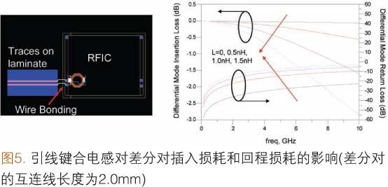 這一點也在圖5(L=0nH的情況下)中表示出來,回程損耗在頻率高達(dá)10.0GHz時保持良好,這表明100.0Ω差分對本身具有良好的匹配和低損耗特性。顯然,在高頻RFIC應(yīng)用中,引線鍵合損耗成為顯著的問題。為了克服這一阻抗失配問題,RFIC和封裝設(shè)計師應(yīng)協(xié)同工作,尋找與特定芯片阻抗相匹配的封裝形式。這樣可能出現(xiàn)非標(biāo)準(zhǔn)差分對設(shè)計,但是該設(shè)計將與引線鍵合芯片非常匹配。