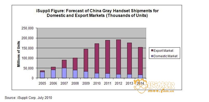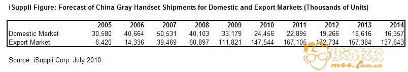在政府打壓下,6月的山寨手機(jī)(Gray Handset)出貨量呈現(xiàn)下降趨勢,對部份國內(nèi)供貨商造成了不利影響,iSuppli數(shù)據(jù)顯示,自07年起,山寨手機(jī)(Gray Handset)出貨量雖然在不斷的提高,但是國內(nèi)市場的出貨量確一直的下降,一方面來至政府的打壓,另外方面由于國內(nèi)市場競爭過于激烈。