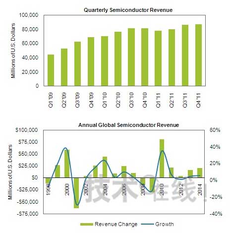 iSuppli從正面否定了對于此次快速增長所擔心的“泡沫”和“二次探底”。關(guān)于泡沫問題,有觀點認為,此前曾創(chuàng)下歷史最高增長率的2000年出現(xiàn)了需求泡沫,所以此次的增長會不會也是泡沫。但是,iSuppli指出,2000年的增長是繼1999年經(jīng)濟繁榮之后的產(chǎn)物,而此次增長的背景卻是經(jīng)濟形勢從2009年以前的經(jīng)濟低迷期開始的復(fù)蘇,因此這兩種情況“在循環(huán)本質(zhì)上完全不同”。關(guān)于二次探底,iSuppli高級副總裁戴利·福特(Dale Ford)表示,“我不同意二次探底將要到來的觀點”。他認為,從2010年下半年開始,2010年半導(dǎo)體市場將恢復(fù)到通常模式。也就是說,2010年第二季度將環(huán)比增加8.2%,達到峰值,第三季度將環(huán)比增加6.7%、第四季度將環(huán)比增加0.4%,出現(xiàn)減速,進入2011年后,由于通常的季節(jié)因素,將轉(zhuǎn)為環(huán)比負增長。iSuppli預(yù)測,回到這種標準增長模式后,2011年的半導(dǎo)體市場將增長7%。