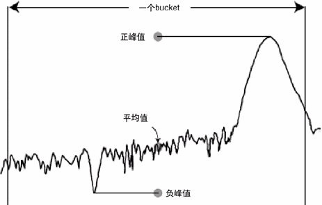 顯示的跡線點(diǎn)通常稱(chēng)為“bucket”。頻譜分析儀進(jìn)行數(shù)據(jù)點(diǎn)采樣的時(shí)間稱(chēng)為“bucket間隔”。圖2顯示了選擇不同檢波類(lèi)型會(huì)對(duì)給定bucket的顯示跡線點(diǎn)產(chǎn)生什么影響。