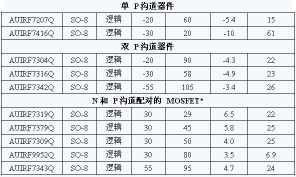 新系列 MOSFET 器件采用 IR 經(jīng)過驗(yàn)證的平面技術(shù)和 SO-8 封裝,內(nèi)含單雙 N/P 溝道器件,除了集成在單一封裝上的N/P溝道器件,還提供堅(jiān)固、緊湊的系統(tǒng)解決方案,以驅(qū)動(dòng)汽車應(yīng)用中的多個(gè)輸出或半橋電路。