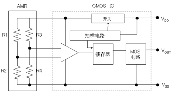 (*1)AMR(Anisotropic-Magneto-Resistance)各向異性磁阻效應。各向異性是指具有方向性,在這里是指可以檢測出任意方向的磁力。