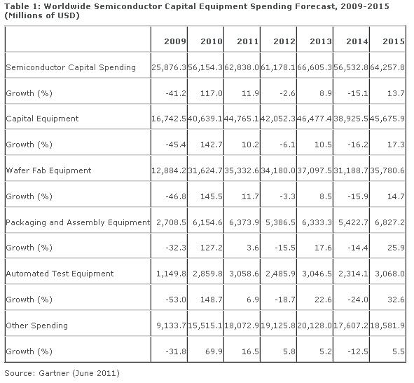 - 2011年半導體資本設備市場所有領域呈增長態勢