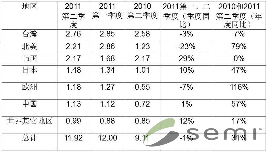 - 2011年第二季全球半導體制造設備出貨額達119.2億美元
