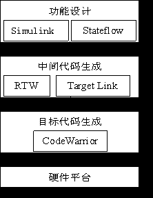 在進行向標準 C代碼的轉換的過程中,可以根據需要加入符合OSEK規范的嵌入式實時操作系統。在代碼生產階段使用的主要工具是CodeWarrior。通過使用CodeWarrior提供的編譯器、調試器等工具,完成從標準C代碼向目標硬件平臺上的產品代碼的轉換工作。下圖表示了汽車電子產品的代碼生成過程。