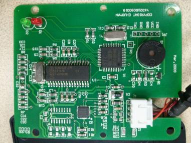 RFID讀寫器是一個包含了基帶微控制器、RF發射和接收模塊以及電源和控制總線的復雜的射頻嵌入式系統。基帶控制信號和系統內部寄存器的狀態直接影響系統的工作狀態。以我們測試的讀寫器為例,NXP CLRC632讀寫控制芯片包含了 壓控振蕩器、鎖相電路、編碼、解碼、混頻和發射/接收功能,芯片的工作受到單片機芯片STC 90c58RD+的控制。