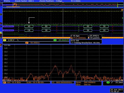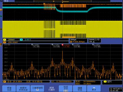 下面我們以一個13.56MHz的RFID讀寫器系統為例,介紹MDO4000的跨域調試應用。