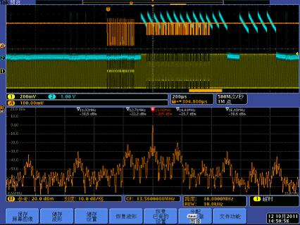 泰克MDO4000系列混合域示波器獨特的創新理念,為調試跨域的時頻相關的系統提供了獨一無二的工具。MDO4000在一臺全功能的混合信號示波器的基礎上,增加了一臺3GHz或6GHz的頻譜分析儀,可以完成普通頻譜分析儀的各種頻域測量功能。完全獨立的示波器時域采集系統和頻譜分析儀頻域采集系統,既可以獨立工作,也可以通過觸發協同工作。通過移動頻譜時間,用戶可以在示波器采集到的時間窗口內,觀測在射頻通道采集到的任何一點的RF信號的頻譜情況。MDO還提供了RF信號的幅度、頻率和相位相對于時間變化的調制域分析功能。這些獨有的功能幫助用戶測量RF信號的各種調制信息。使用頻譜分析儀的工程師經常面臨的一個問題是如何準確地觸發并捕獲到關心的RF信號。由于傳統的頻譜分析儀觸發功能很有限,用戶很難做到一點。MDO4000不但可以通過RF信號的各種特征進行觸發,還可以使用示波器的觸發系統,通過基帶或控制信號完成RF信號的觸發采集,這種功能極大地降低了調制物聯網設備的難度。