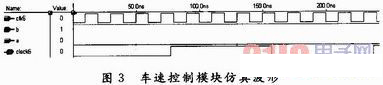 出租車車速控制模塊用于控制出租車的車速。圖1中,當起/停開關及清零信號RESET都為“1”時,汽車啟動就開始進入里程計數和計費器工作狀態。通過改變“車速選擇”端的輸入值可以控制汽車行駛快慢。用CLK6作為車速控制模塊的時鐘輸入,CLOCK6作為輸出,用A、B作為車速選擇變量,分別取值從“00”→“01”→“10”→“11”時,車速越來越塊。其VHDL程序代碼如下: