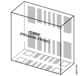 關于垂直和水平安裝方向的CVMP焊盤布局(焊盤圖形),請參閱本應用筆記的"焊盤布局"部分。CVMP背面的焊盤布局如圖7所示。注意,封裝正面上有一些額外的焊盤(見圖4)沒有顯示在焊盤布局中,這些焊盤用作測試點,不應進行電氣連接。