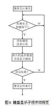系統(tǒng)軟件總體流程圖如圖3所示。系統(tǒng)上電后,首先進(jìn)行初始化,對寄存器和I/O端口進(jìn)行設(shè)置。當(dāng)檢測到按鍵有效信號,讀取按鍵數(shù)據(jù),傳遞給單片機(jī)并送顯示模塊顯示,鍵盤設(shè)定結(jié)束后置標(biāo)志位,單片機(jī)檢測到此信號后,開啟第1路繼電器進(jìn)行加熱。此時初始化數(shù)字溫度計DS18B20進(jìn)行溫度測量,并將測得實時溫度數(shù)據(jù)送單片機(jī)處理,再由顯示模塊顯示。DS18B20每測完一次溫度后,就將實測溫度值與設(shè)定溫度值的上限和下限進(jìn)行比較,如實測溫度高于設(shè)定溫度的上限,轉(zhuǎn)到繼電器關(guān)閉處理程序,檢測每一路繼電器的開、關(guān)狀態(tài),按照第3路、第2路、第1路的順序關(guān)閉繼電器(每執(zhí)行1次關(guān)閉1路繼電器);如實測溫度低于設(shè)定溫度的下限,轉(zhuǎn)到繼電器開啟處理程序,檢測每一路繼電器的開、關(guān)狀態(tài),按照第1路、第2路、第3路的順序開啟繼電器(每執(zhí)行1次開啟1路繼電器)。在之后的系統(tǒng)工作中始終循環(huán)測溫~溫度值比較~開啟或者關(guān)閉繼電器這樣的流程,以達(dá)到對加熱區(qū)域溫度恒溫控制的目的。