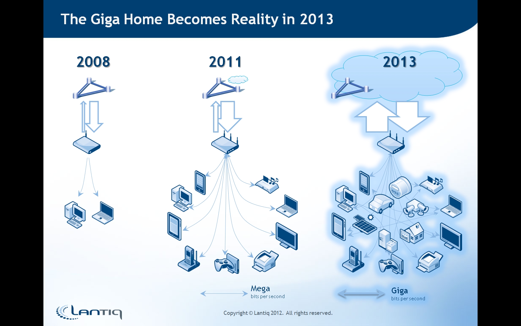 領(lǐng)特公司(Lantiq)首席執(zhí)行官Christian Wolff 今日在CeBIT全球會議上闡述:千兆家庭將在2013年成為現(xiàn)實,而家庭內(nèi)部和外部的各種通信技術(shù)的一種智能混合之道將成為其推動因素。