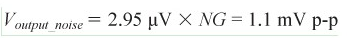 跨導放大器的輸入噪聲應乘以此增益。ADA4505-2的0.1 Hz至10 Hz輸入電壓噪聲為2.95 μV p-p,因此輸出端的噪聲為: