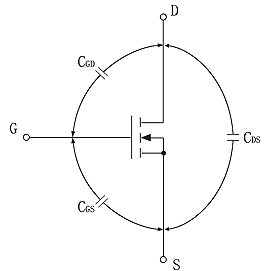 柵極驅動損耗是在開關管導通及關斷瞬間,在一定的柵源電壓VGS下,對MOSFET的極間電容(如圖2所示)進行充電(建立VGS電壓,使MOSFET導通)和放電(讓VGS=0,使MOSFET關斷)造成的損耗。此損耗與MOSFET的輸入電容Ciss或反饋電容Crss、柵極驅動電壓VGS及開關頻率fsw成比例。要減小此損耗,就要選擇Ciss或Crss小、閾值電壓VGS(th)低的功率MOSFET。