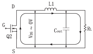 同步整流管也是工作在開關狀態(其開關頻率與開關管相同),但因同步整流管工作于零電壓(VGS≈0V)狀態(如圖3所示),其開關損耗可忽略不計。