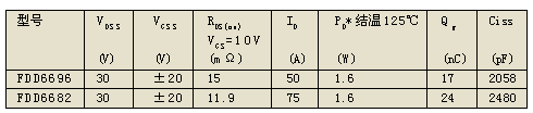初選快速開關管FDD6696為開關管(其Qg為17nC),同步整流管選FDD6682(其RDS(on)=11.9mΩ)。其主要參數如表4所示。
