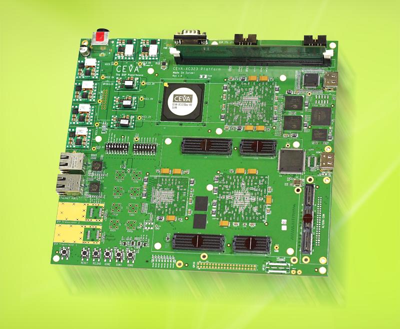 此開發工具套件包括:6.5Gbps光收發器、雙端口1Gbps以太網、1GB DDR2存儲器、64MB SSRAM存儲器、HDMI進/出端口、雙串行RapidIO收發器和數個可以增加SoC專用邏輯的大型用戶可編程FPGA模塊。CEVA-XC323硅片采用65 nm工藝生產,包括CEVA-XC323 DSP、一個功率調節單元(PSU)、兩個XC-DMA控制器、程序緩存(512KB L1數據和1MB共享 L2存儲器)、外部64/128位 AXI主接口和從接口、32位主APB接口、多個高效主/從存儲器接口、功率管理單元(PMU)、定時器、中斷控制單元(ICU)、GPIO等。