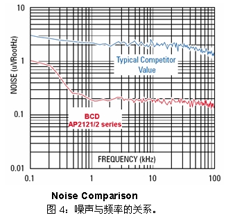 當然也有例外,個別歐美的大廠商采用先進的工藝設計生產的的CMOS LDO把本該外面加的Bypass電容做到了芯片里面,這樣的LDO產品的噪聲約為100 uVrms的水平。