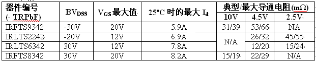 全新的功率MOSFET具備極低的導通電阻(RDS(on)),能夠大幅降低傳導損耗。新產品可以作為N及P通道配置里的20V或30V器件,最大柵極驅動從12Vgs到20Vgs不等。