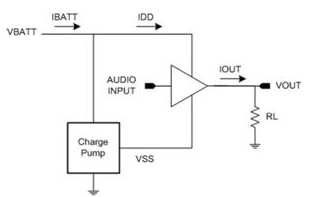 其中的技巧是設(shè)計(jì)將電池電壓降低至較低電壓的放大器,并使用適應(yīng)性電源軌 (分別有負(fù)電源軌) 降低播放音樂時整個輸出 FET 的電壓降幅。其中一種實(shí)現(xiàn)這類放大器的方式是,使用電荷泵作為圖 8 所示的步降區(qū)塊。某些工程人員偏好這類做法,原因在于步降電荷泵僅需要相對較小的飛馳電容(flying capacitor) (1μF 至 2.2μF),而這也是相對較小的組件