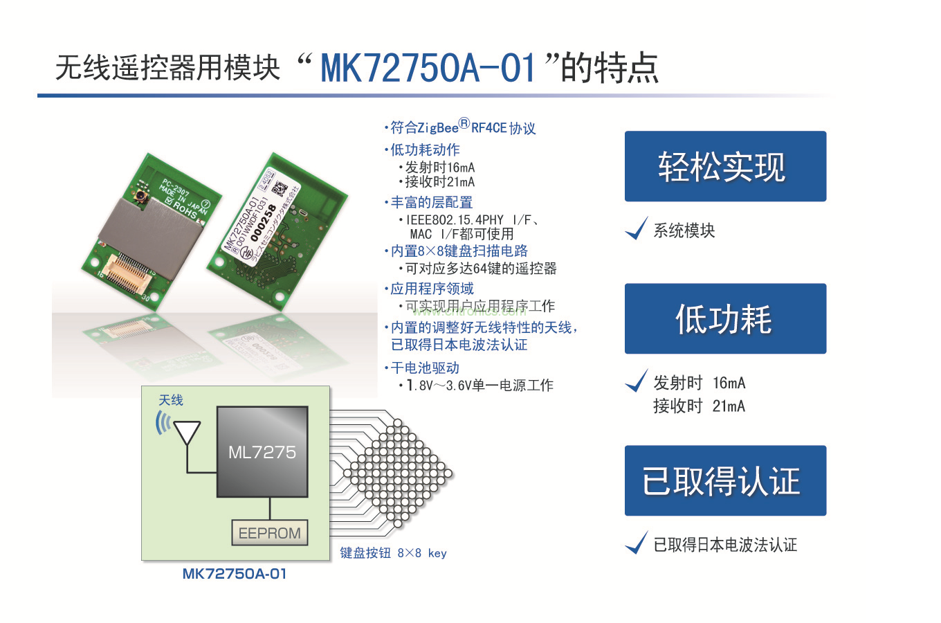 MK72750A-01:羅姆開發出符合ZigBeeRF4CE協議的無線通信模塊