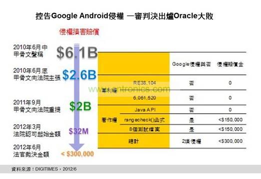 DIGITIMES Research分析師兼項(xiàng)目經(jīng)理林俊吉分析,行動(dòng)通訊產(chǎn)業(yè)在2012年5月至6月上旬,有幾方面值得留意及了解。其中關(guān)注度最高,當(dāng)屬專利訴訟方面,被喻為世界大賽的甲骨文(Oracle)控告Google侵犯其Java著作及專利權(quán)一案,一審判決出爐Oracle大敗,Google幾近全身而退,然林俊吉推估,因甲骨文幾乎篤定上訴,這樁官司尚未完全了結(jié),但和解契機(jī)亦在。
