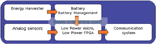 圖 2: 由環境能量供電的低功率系統架構
